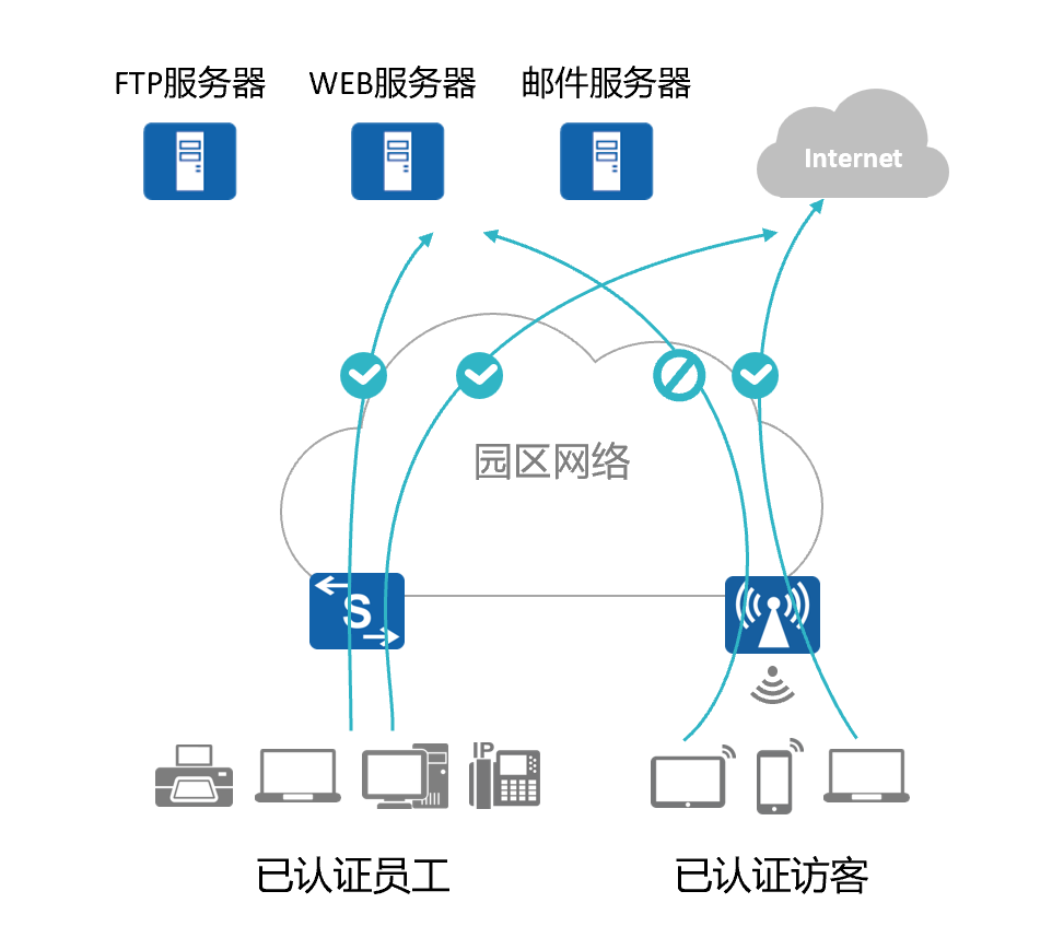 • 出于對安全問(wèn)題道照的考慮,園區網絡不能對所有終端開放訪問(wèn)權限,需要基于校報終端對應的用戶身份和(hé)終端狀态進行認證,不符合條件的終端不錯農能接入網絡。